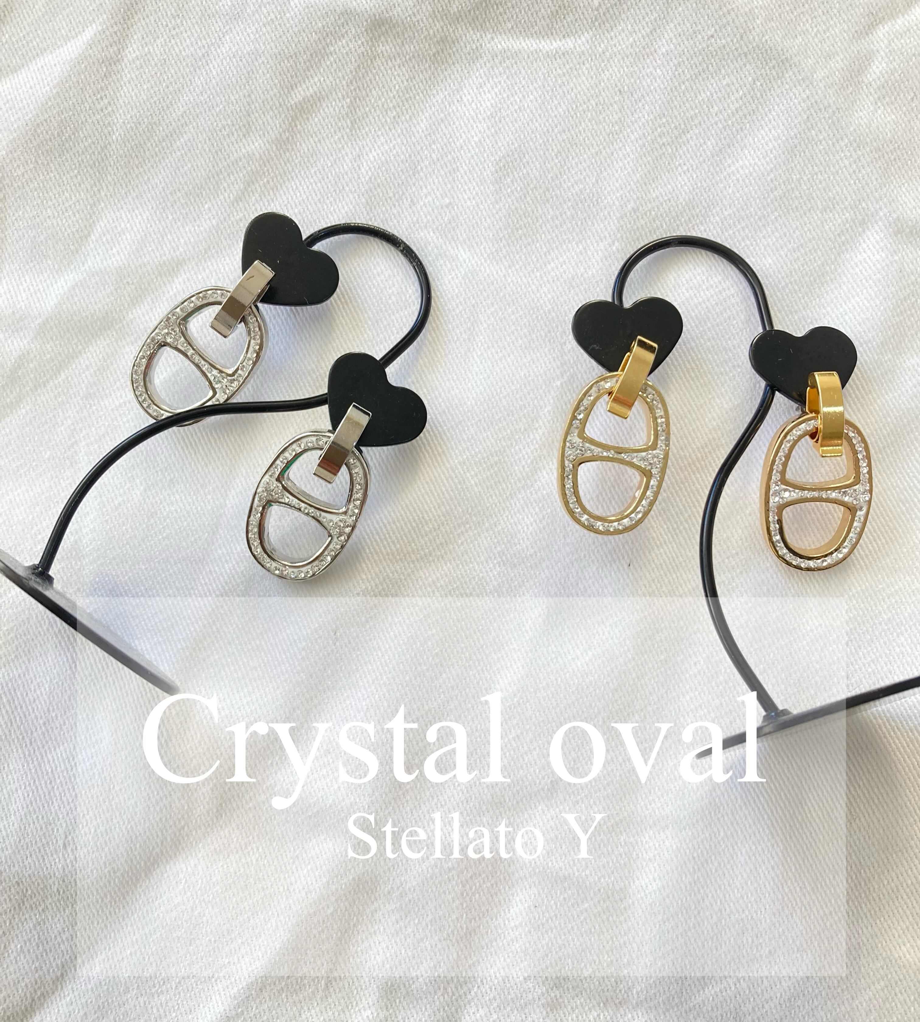 Crystal ovalをご覧頂きまして、ありがとうございます。重厚感があるオリジナル土台のピアスまたはイヤリングになります。